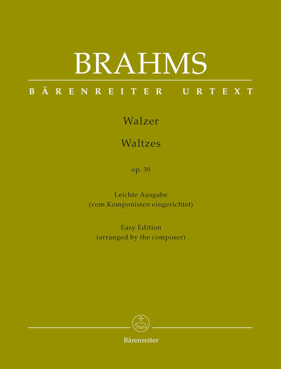 Both versions of the “Waltzes” op. 39 (BA 9602, BA 9603) are available in separate editions and form an important contribution to Bärenreiter’s series of Brahms’s works in scholarly-critical Urtext editions. Both editions include fingering, a well-presented musical layout and optimum page-turns. The Urtext editions are complemented by explanations on performance practice used by Brahms, an informative foreword on the genesis, sources and significance of the works together with comments on the primary sources