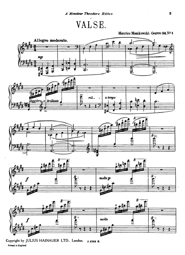 Moszkowski Valse in E Op.34 No.1 for Piano