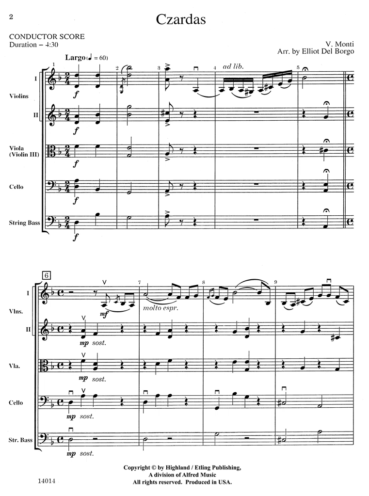 Monti Czardas (Csardas) for String Orchestra (Score and Parts)