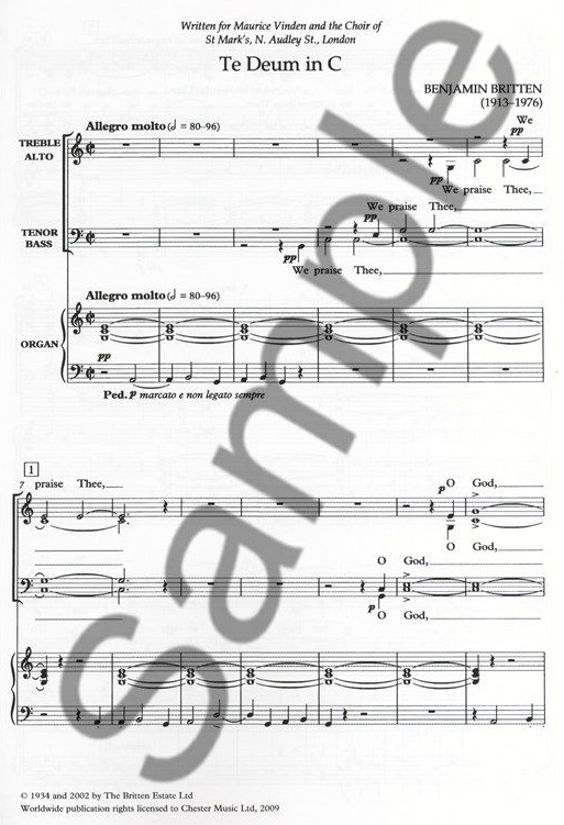 Britten Te Deum In C - Treble (Soprano)/SATB/Organ