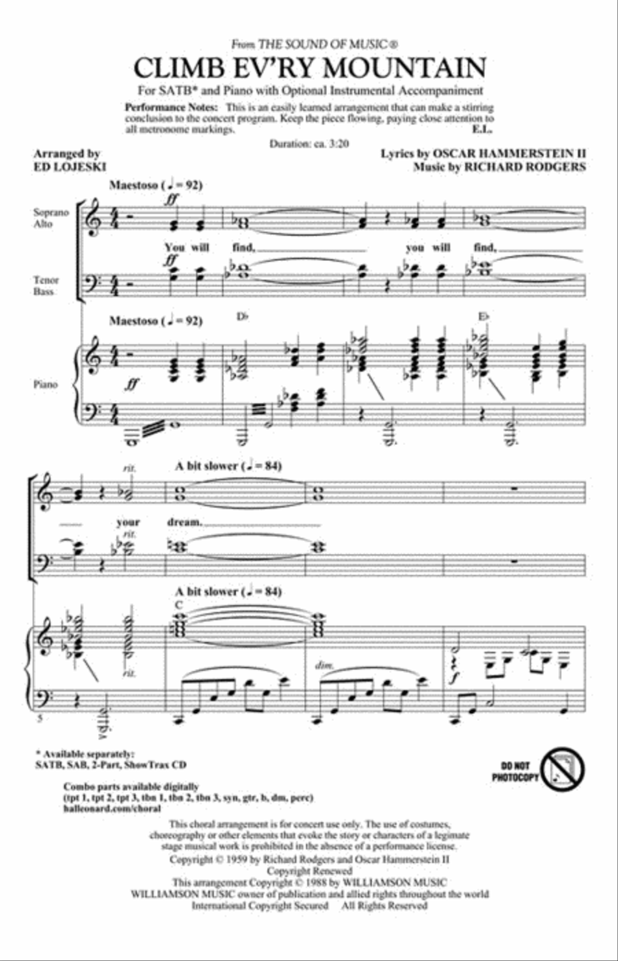 Climb Ev`ry Mountain (from The Sound of Music) SATB