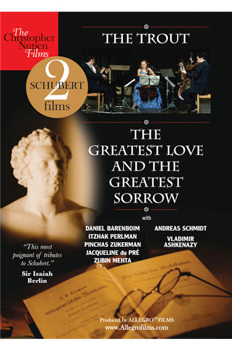 불세출의 천재 작곡가 슈베르트를 더 가깝게 이해하고 싶은 사람들에게 아주 매혹적인 영상물이다. 이 영상물은 두 개의 다큐멘터리로 구성되어 있다. 우선 1969년 8월 30일, 사우스 뱅크 서머 페스티벌 동안, 퀸엘리자베스 홀에서 있었던 슈베르트의 "송어" 오중주곡인데, 다니엘 바렌보임이 피아노, 이차크 펄먼이 바이올린, 핀커스 주커만이 비올라, 재클린 뒤프레가 첼로, 그리고 주빈 메타가 더블베이스를 연주했다. 펄먼의 생생하고 완벽한 연주는 생기와 에너지로 가득하고, 뒤프레의 첼로는 그녀가 남긴 명연주들처럼 탁월한 솜씨다. 지금은 세계적인 거장 지휘자가 된 주빈 메타의 더블베이스 연주는 신기하다. 네 사람의 현악기 연주자들을 이끄는 사람은 바렌보임인데, 슈베르트 작품의 리듬감을 잘 살려 연주한다. 뒤프레와 친구들이 함께한 영상은, 재클린 뒤프레가 말하고 있듯이, "영원한 행복의 순간"을 말해준다. 음악적 동료로서 서로 간에 느끼는 우정과 센스, 음악적 즐거움과 따스한 분위기로 가득한 연주다. 오래된 장면들이지만 화질도 상당히 좋은 편이다. 55분이나 되는 기다란 다큐다.