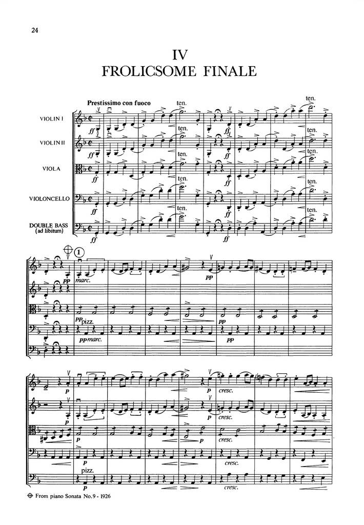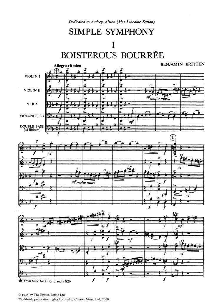 Britten Simple Symphony for String Orchestra (or String Quartet) for Study Score