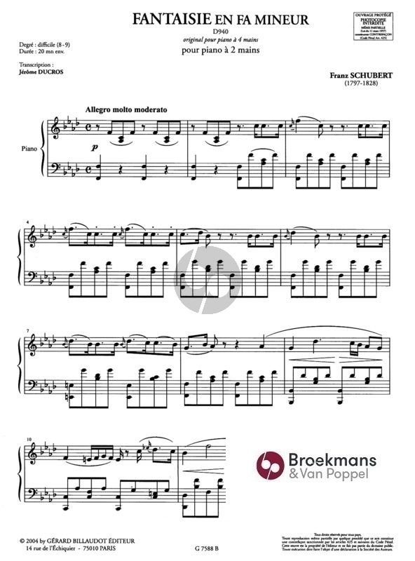 Schubert Fantasia Op.103 (D 940) in F minor (arr. for Piano Solo)