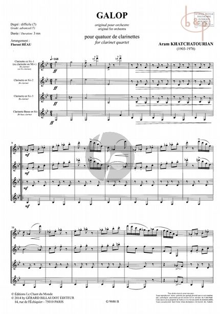 아람 하차투리안 갈롭(Galop) 클라리넷 4중주용