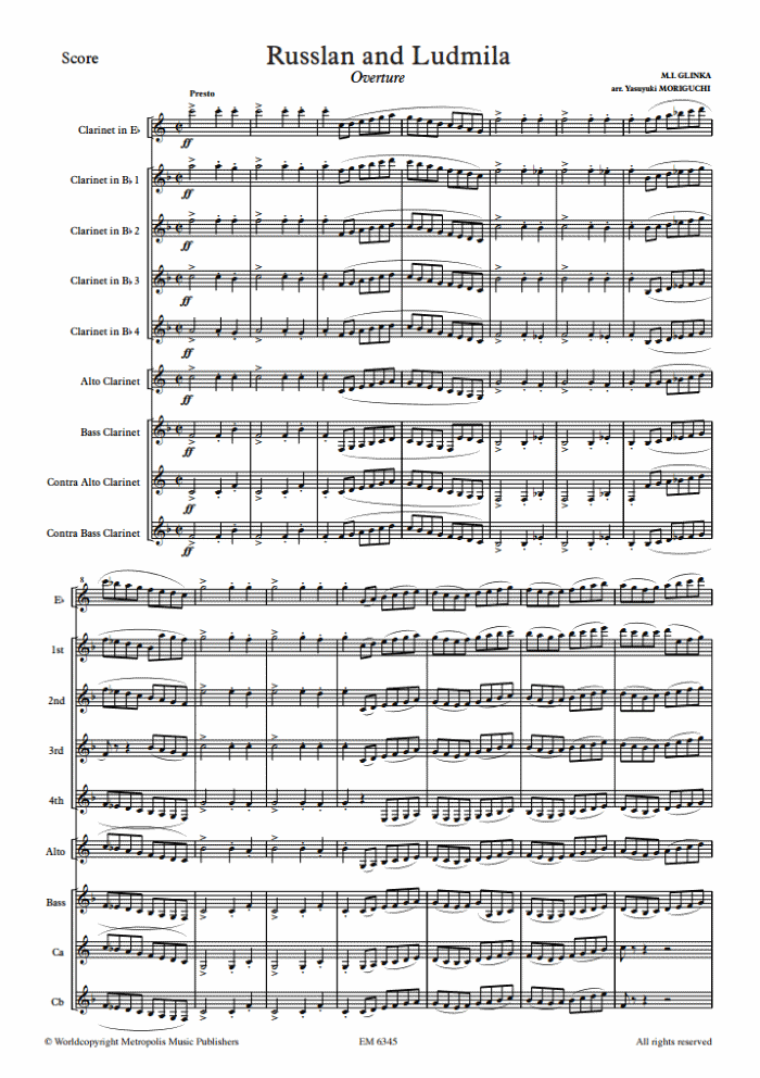 Glinka Overture Ruslan and Lyudmila for Clarinets Ensemble