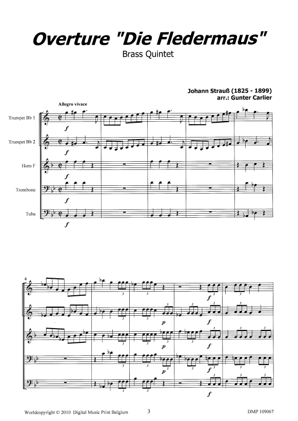 Strauss Overture "Die Fledermaus" for Brass Quintets