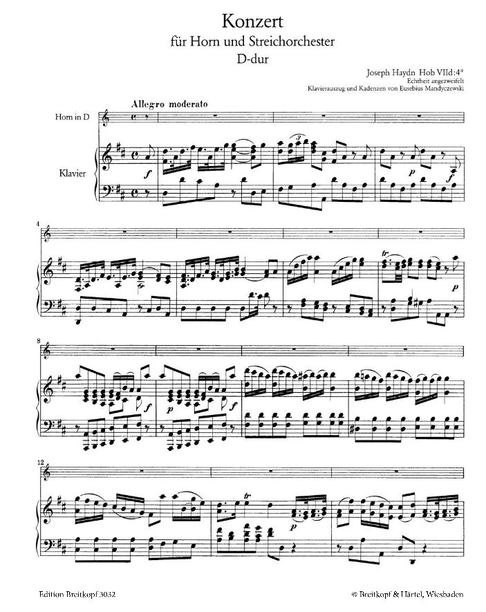 Haydn Horn Concerto No.2 in D major Hob.VIId:4 for Horn and Piano
