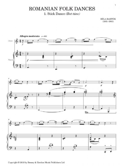 루마니아 민속 무용은 원래 1915년에 6개의 짧은 피아노 곡으로 구성된 모음곡으로 작곡되었으며, 이후 바르톡이 소규모 앙상블을 위해 편곡했습니다. 이번 에디션에서는 하이웰 데이비스(Hywel Davies)가 피아노 반주와 함께 오보에 모음곡을 편곡했습니다.