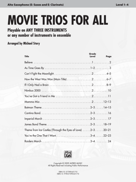 Instrumentation: Alto Saxophone (E-flat Saxes & E-flat Clarinets)