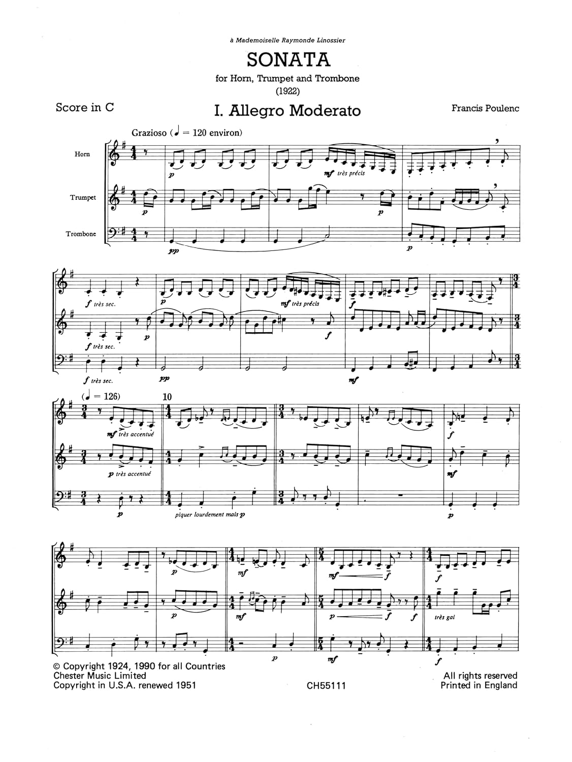 Poulenc Sonata for Horn, Trumpet and Trombone (Score and Parts)
