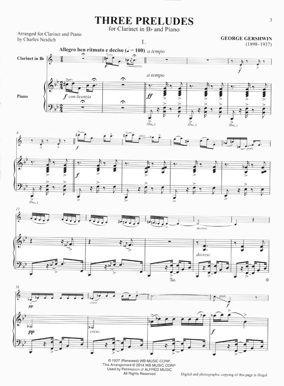 Gershwin 3 Preludes Arr. for Clarinet and Piano