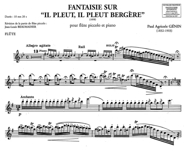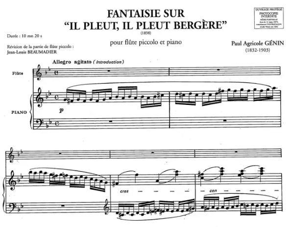 Genin Fantaisie sur "Il Pleut, Il Pleut Bergere" for Piccolo and Piano