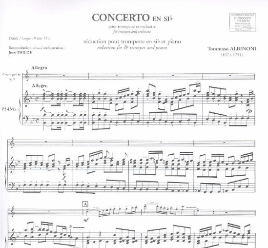 Albinoni Concerto Op.7, No.3 in Bb major for Trumpet and Piano