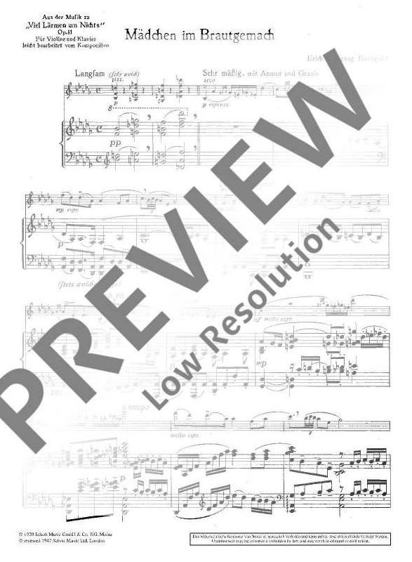 에리히 볼프강 코른골트 4개의 소품 작품 11 셰익스피어의 '헛소동' 부수음악 중 4곡 바이올린과 피아노
