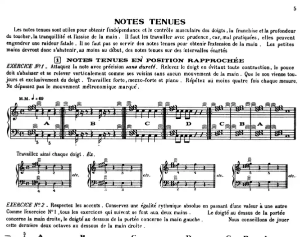 Contenu: Chapitre I - Notes Tenues Et Cinq Doigts, Notes Repetees, Trilles Chapitre II - Doubles-Notes Chapitre III - Gammes, Arpeges Chapitre IV - Jeu Du Poignet, Octaves, Deplacements, Tremolo, Glissando