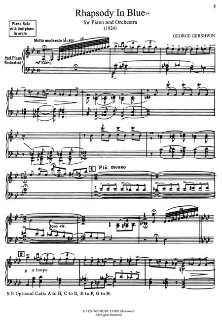 Gershwin Rhapsody in Blue for Piano Solo (Original)