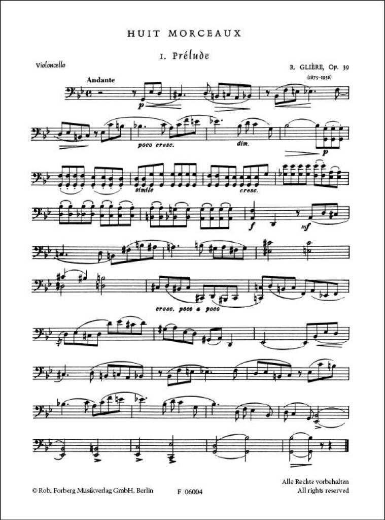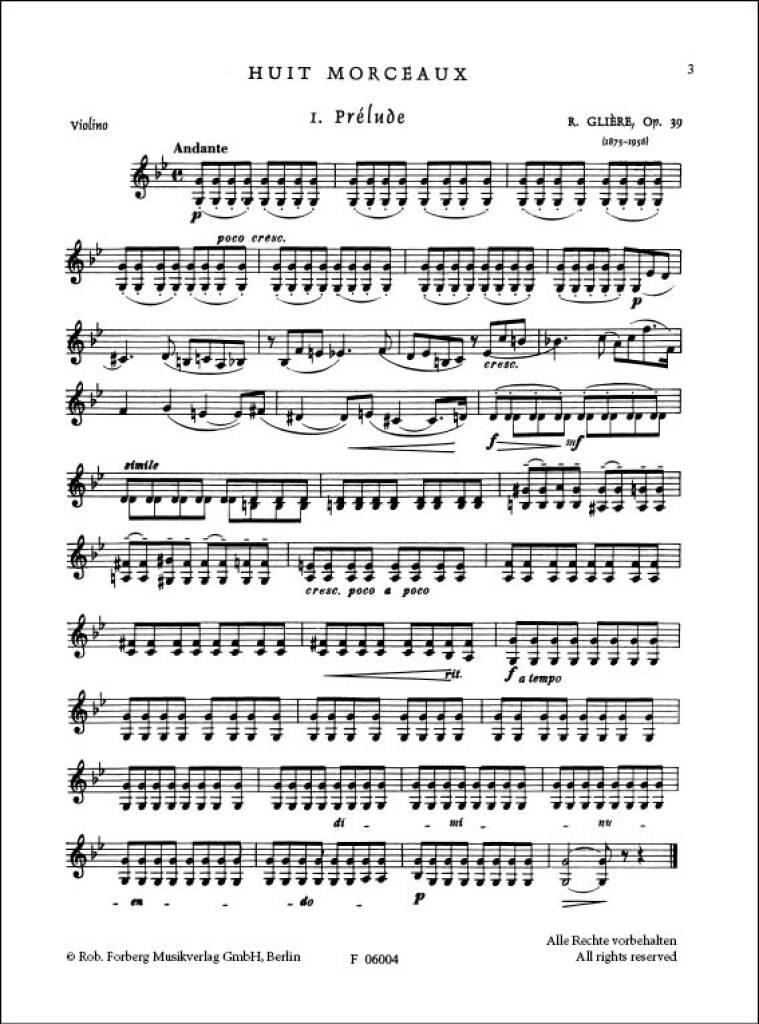 Gliere Eight Pieces (8 Pieces), Op.39 for Violin and Cello