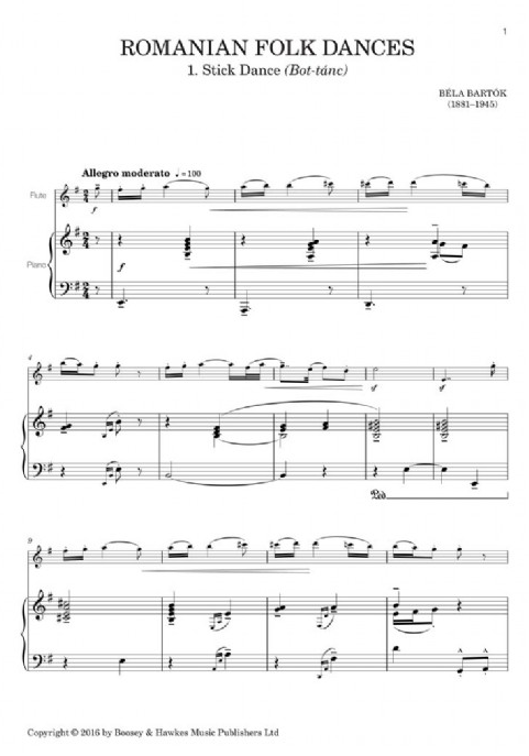 루마니아 민속 무용은 원래 1915년에 6개의 짧은 피아노 곡으로 구성된 모음곡으로 작곡되었으며, 이후 바르톡이 소규모 앙상블을 위해 편곡했습니다. 이번 에디션에서는 하이웰 데이비스(Hywel Davies)가 피아노 반주와 함께 플루트 모음곡을 편곡했습니다.