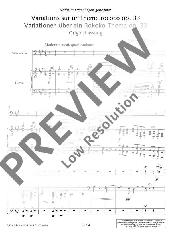 Tchaikovsky Variations on a Rococo Theme, Op.33 for Cello and Piano