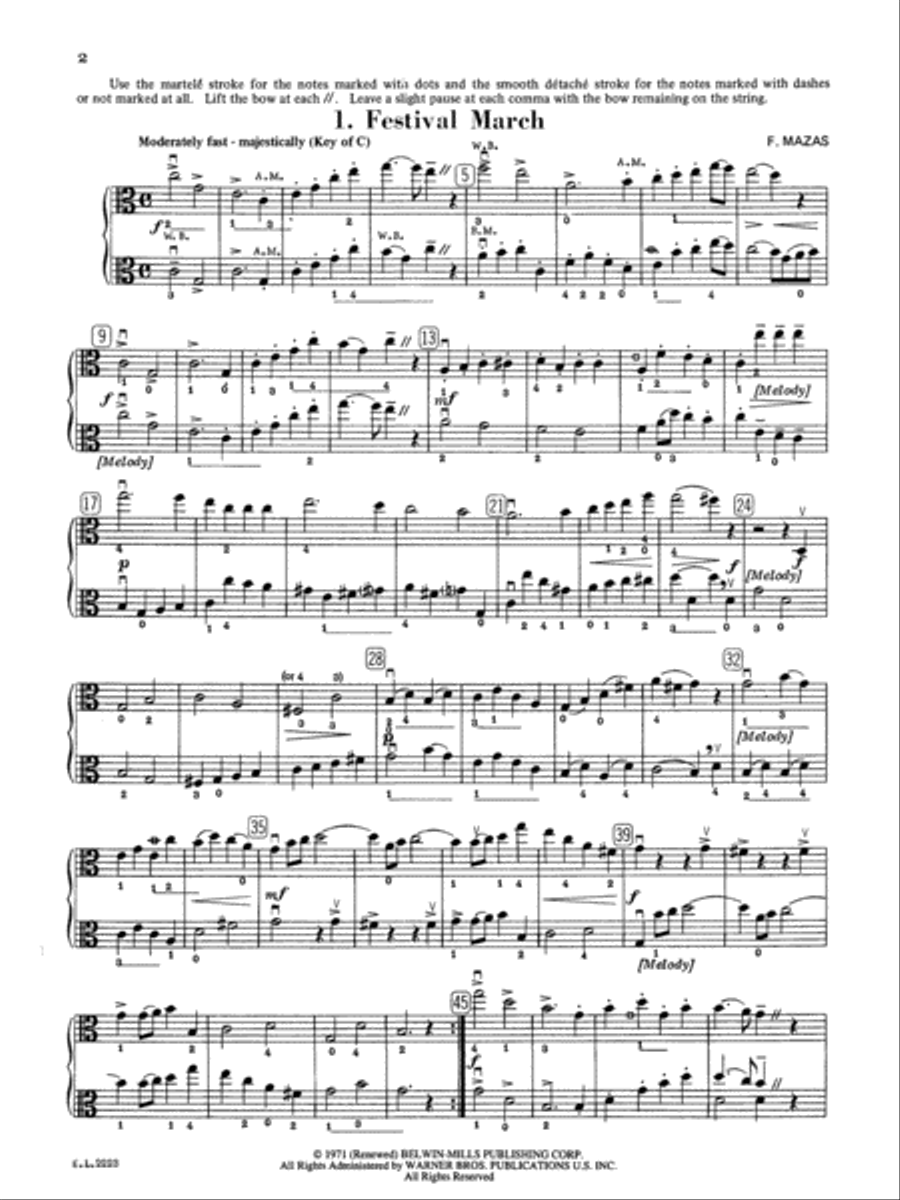 The study of string instruments should include ensemble playing at the earliest possible stage. There is much to be gained from the playing of duets. Each player learns how to listen to the other, and in a short time develops an awareness of balance, musical phrasing, intonation, and tone quality. This type of training is excellent preparation for participation in large groups. These four volumes of duets for two violins will help fill the need for early ensemble experience in the public schools. They should be used in string classes as a supplement to any of the standard string methods. They will also encourage music making outside of the school, with parents or with other students. These duets are ideal for recitals in the public schools and in public school festivals. They may be played by two performers, or by multiple performers on each part, with or without piano accompaniment.