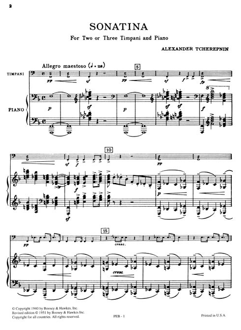 Tcherepnin Sonatina for Two or Three Timpani and Piano