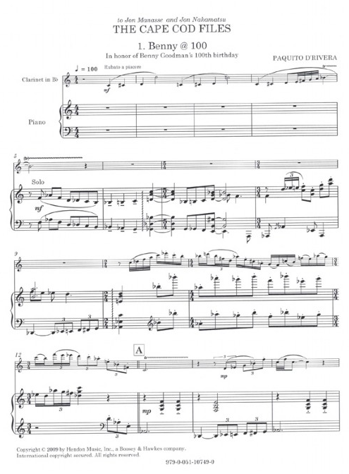 D`Rivera The Cape Cod Files for Clarinet and Piano
