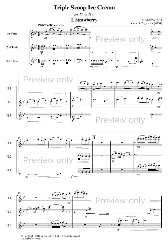 Many people gave me ideas while formulating this piece. In particular, I got the scoop about ice cream from Rie Nagase, flute player of the band "Kurume City Brass" in Fukuoka Prefecture. The premiere was performed by members of "Flute Ensemble Lan" for a CD on the Plarm Yokohama label.