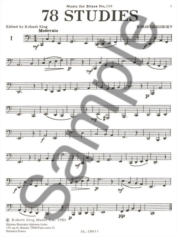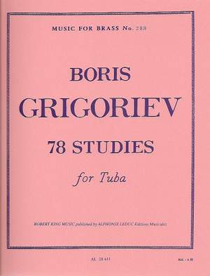 78 Studies for Tuba는 많은 프로 튜바 연주자를 양성한 러시아 트롬본 연주자 Boris Grigoriev(1906-1978)가 작곡했습니다. 성숙한 기술 지식이 필요한 이 에튀드는 고급 학생에서 프로 연주자까지 유익할 것입니다. 매우 서정적이고 러시아의 영향이 강한 이 에튀드는 낮은 음역대 연주이며 모든 키를 포괄하며 점차 샤프와 플랫으로 이동합니다. 튜바 연주자들이 정말 좋아하는 이 곡은 음향과 기법의 질을 향상시키고자 하는 진지한 튜바 연주자에게 꼭 필요한 곡입니다.