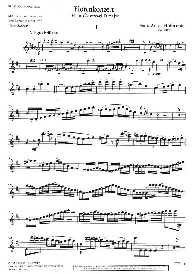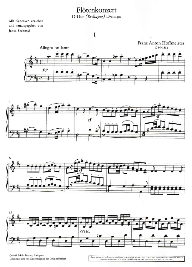 Hoffmeister Flute Concerto in D major for Flute and Piano