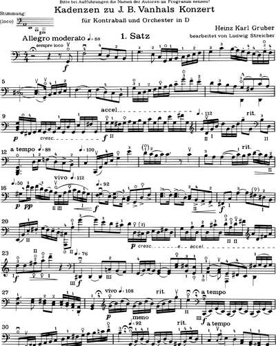 Gruber Cadenza to Vanhal Bass Concerto in D for Bass Solo